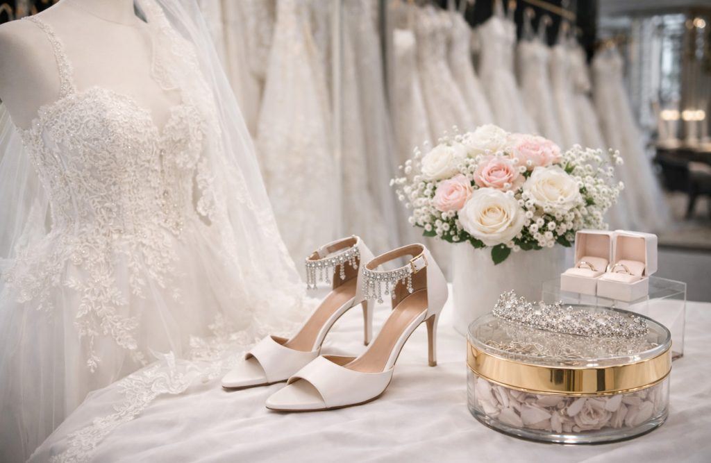 Accessories such as shoes, veils, tiaras, and jewelry are classic upselling items. By placing them strategically in the store, you increase the chances of a sale.